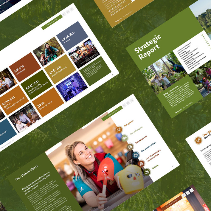 Detailed research across existing materials, combined with a strategic analysis of peers, helped identify the differentiators that truly set Center Parcs apart. We translated these insights into targeted recommendations for content and report structure, designed to sharpen the narrative and strengthen the company’s competitive positioning. We also developed straplines options to capture the brand’s essence, highlight inspiring stories and enhancing cohesion throughout the report.