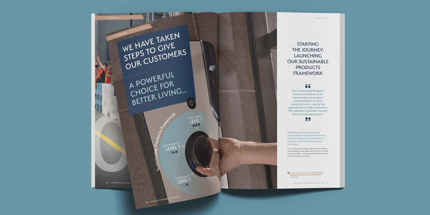 In 2025, the Company reached an inflection point. Confident in the credibility of its own sustainability story, Norcros published its first standalone Sustainability Report alongside a dedicated microsite. The communication positioned the Norcros ‘powerful choice’ at the heart of what it meant to offer its B2B customers, and the end consumer, sustainable options for ‘better living’.