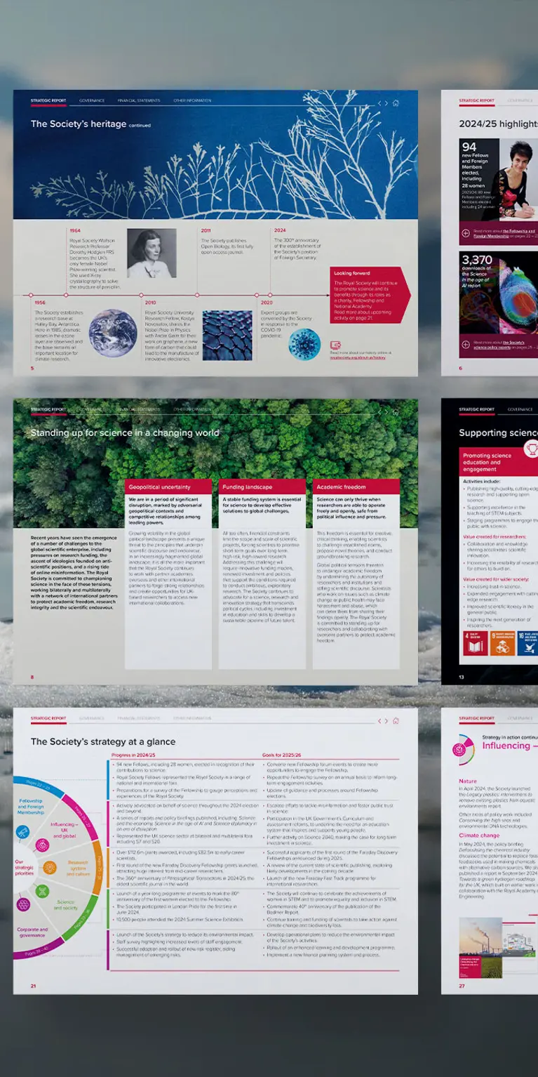 What makes the Royal Society both impactful and sustainable is trust — and the way it translates that trust into public benefit — its independence from government, industry and ideology gives it authority unlike any other voice in science. Here, our review of the 2024 Trustees’ Report identified an organisation with a strong story to tell, but one that needed to be clearer, bolder, more explicit and anchored in its purpose and processes. We worked closely with the Society to reshape its reporting framework, advising on how to bring its motto – Nullius in verba, “take nobody’s word for it” – to life. Deeper cohesion and reporting transparency elevated their mission, vision and values to strengthen disclosures on Fellowship election and governance, placing ethics at the heart of the report’s structure, and amplifying their most valuable asset: credibility. Data, stories and visualisation were layered with precision to reframe the Society’s independence as its unique strength in an era of global volatility.
